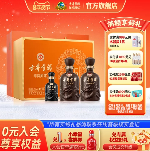 163元!古井贡酒年份原浆献礼版 55度500mL*2瓶白酒礼盒