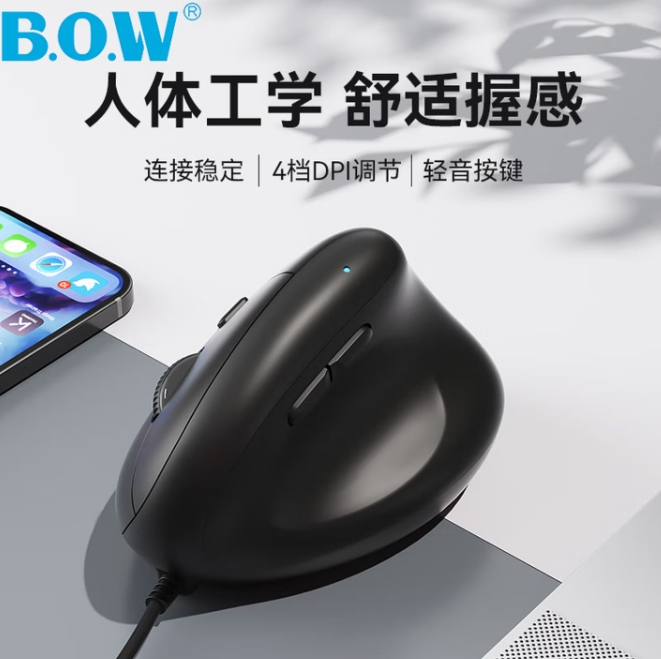 33元!B.O.W航世 M190U 人体工学有线鼠标