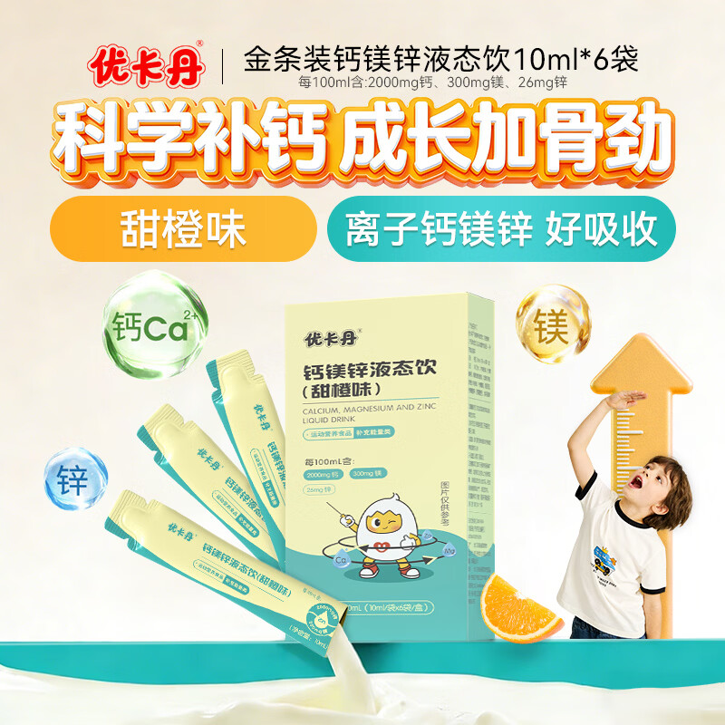 优卡丹小金条液体钙儿童青少年补钙3-12岁6-18岁10ml*6条【甜橙味】首购到手价3.78元