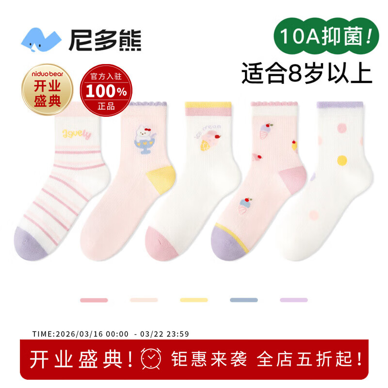 尼多熊儿童袜5折:女童薄款棉袜22.5元/3双地板袜16.5元