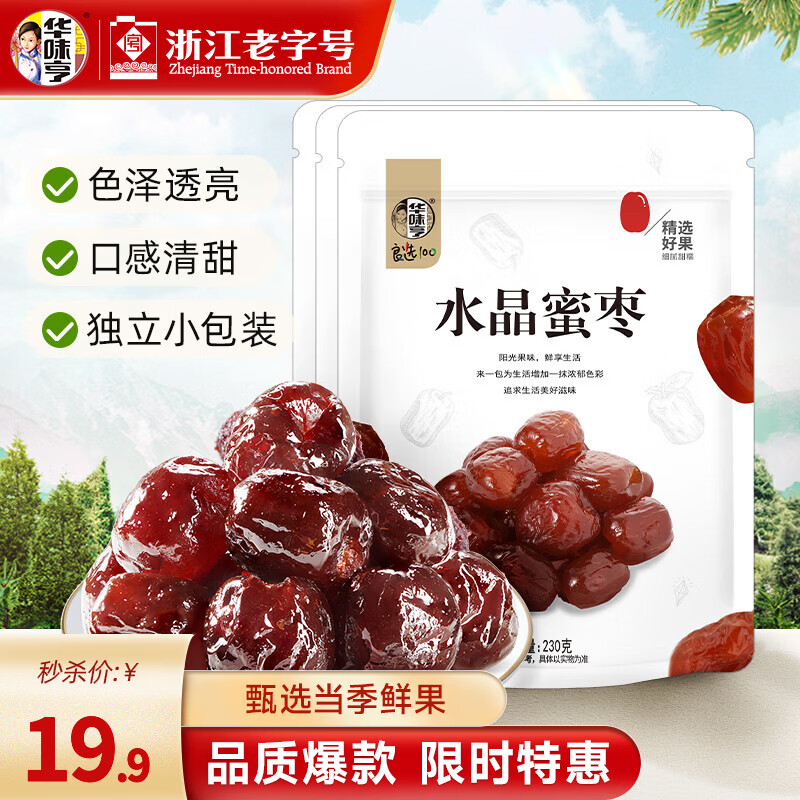 华味亨水晶蜜枣3袋装,到手仅15.9元