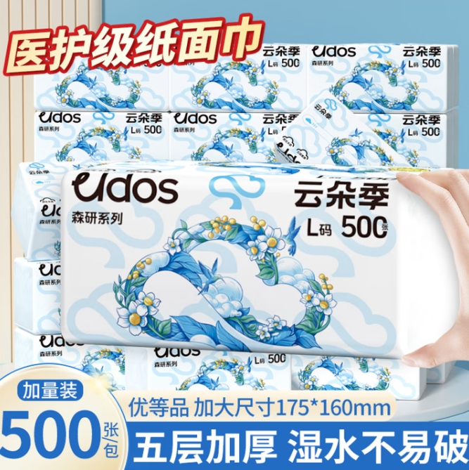 6.9元包邮!云朵季.抽纸500张*5大包