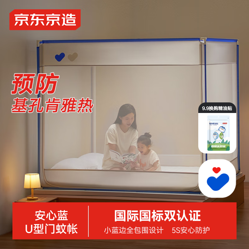 京东京造蚊帐政府补贴价:安心蓝系列1.5米/1.8米床款低至228.9元