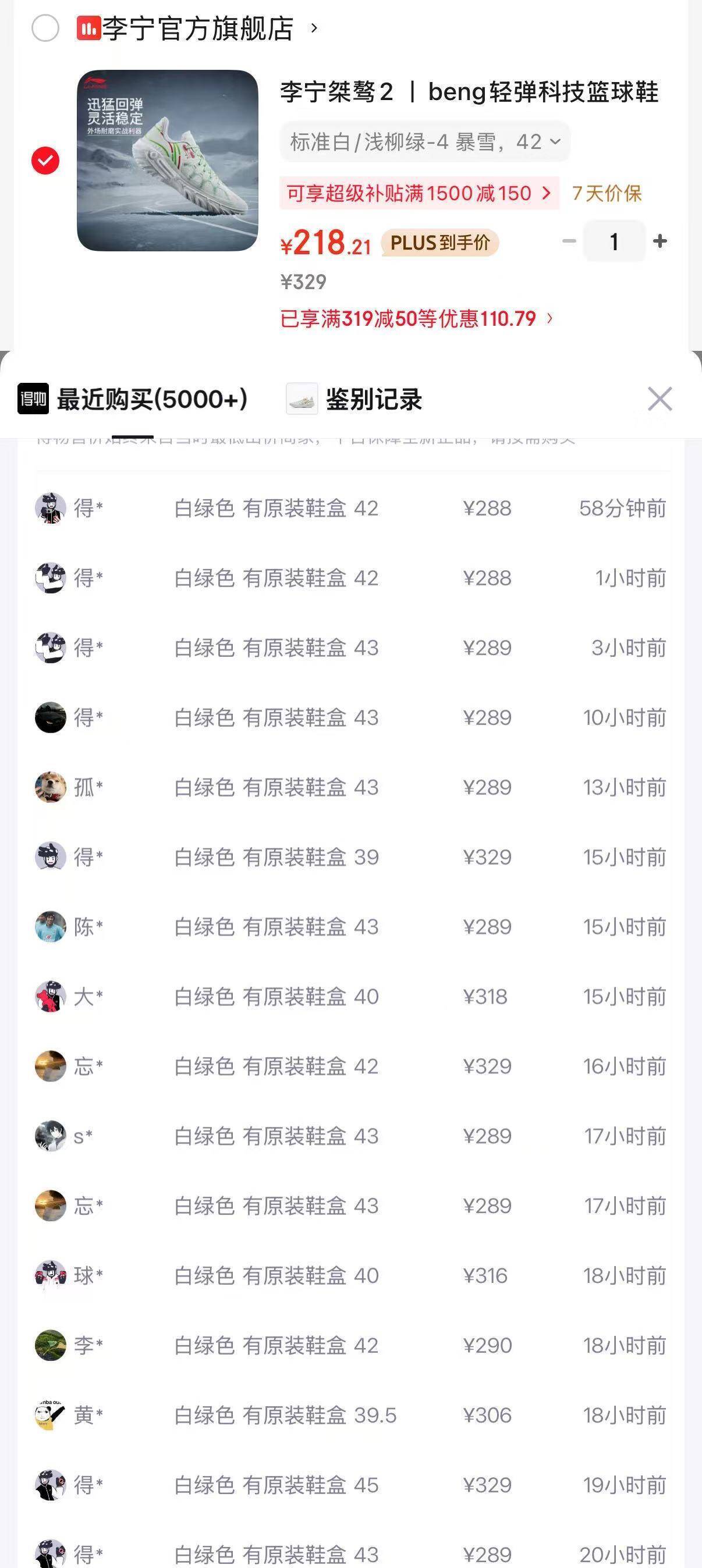 李宁扶摇BOOM PLUS运动鞋到手价201元,得物同款299元