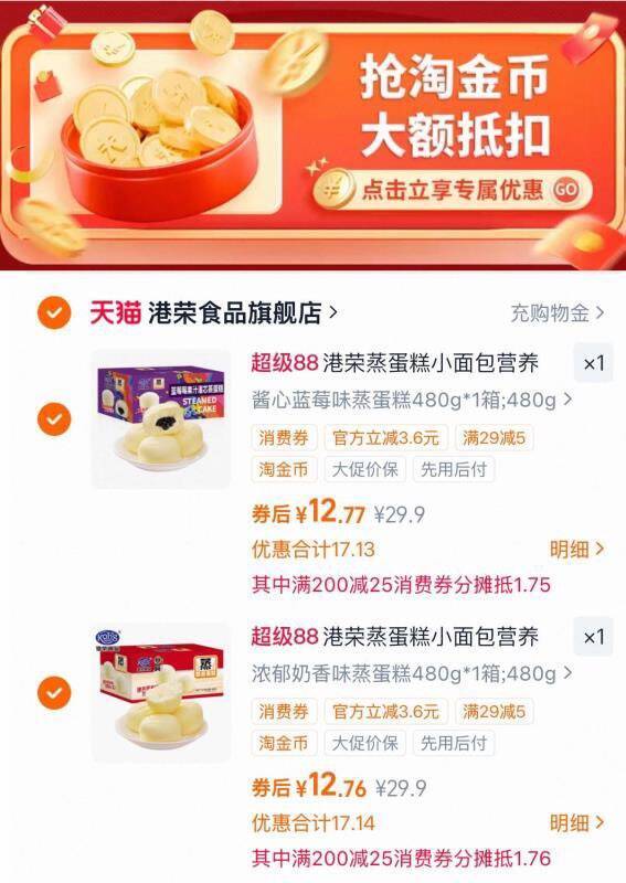 港荣蒸蛋糕480g*2箱仅需25元
