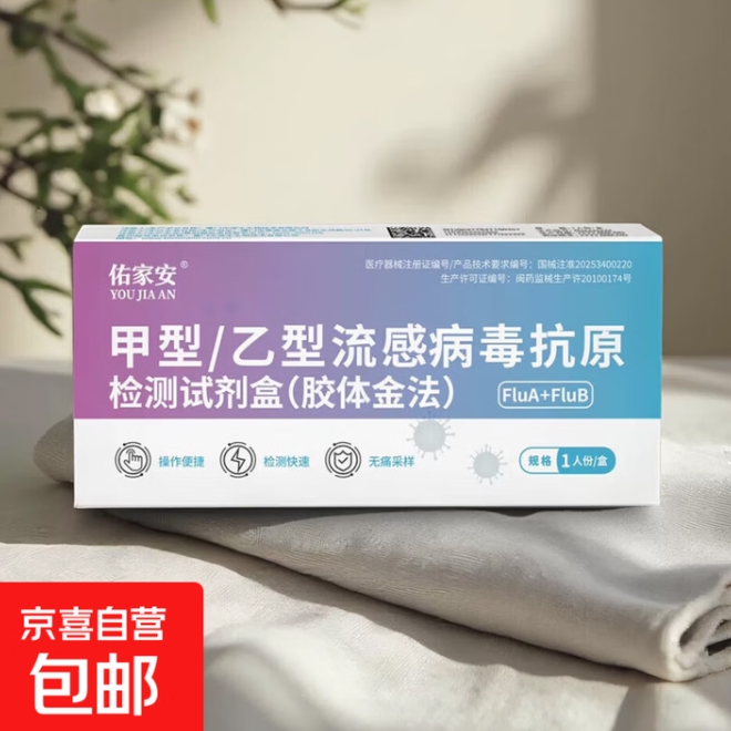 7.9元包邮!佑家安甲流乙流流感病毒抗原检测试剂盒1盒