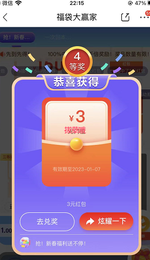 京东特价版app首页“福袋大赢家”付1元可抽奖,有机会得5-3券/3元无门槛等