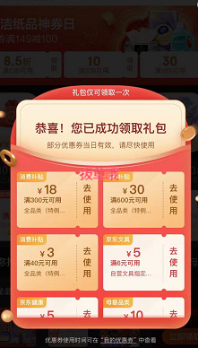 1、京东APP,领券中心,点点券图标位置,左右滑动,可见“领188元礼包”大礼包 包含300-18/600-30全品类券,(如下图);