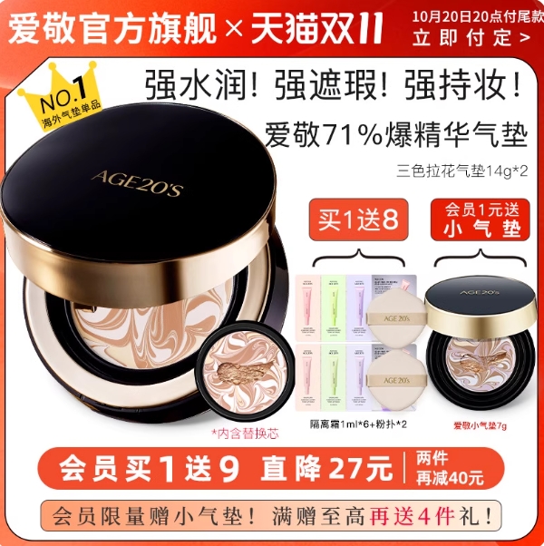 【8点】70.3元!爱敬气垫神 1正1替+隔离6ml+粉扑*2