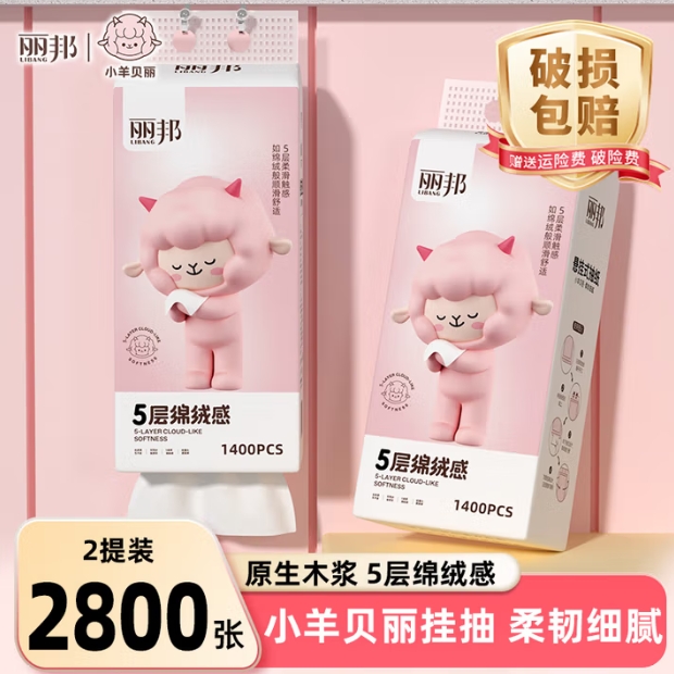 6.9元包邮!丽邦抽纸面巾纸 *2提