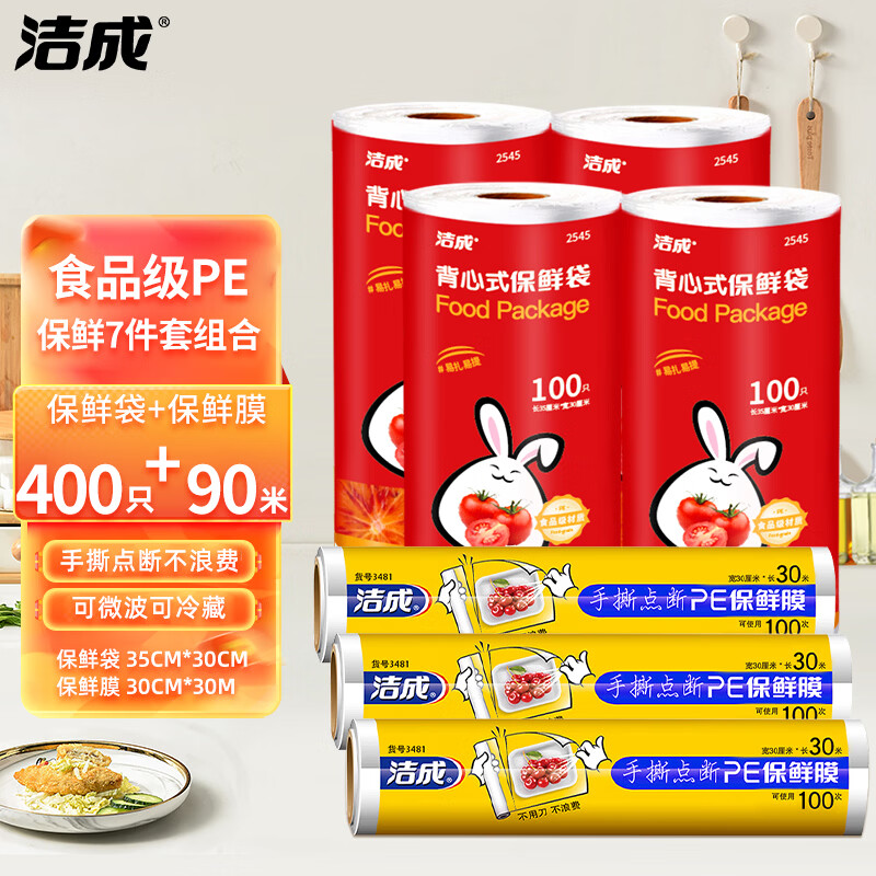 洁成保鲜袋400只+保鲜膜90米组合,到手价仅需19.9元
