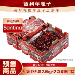 334.6元!京鲜生 智厘子Santina车厘子 3J 5斤*2箱装