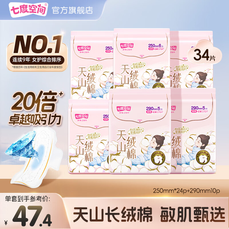 七度空间天山绒棉卫生巾组合 买2件仅需57.2元