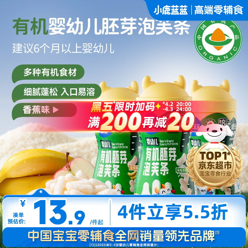 小鹿蓝蓝婴幼儿有机胚芽米饼 最终到手价约8.9元