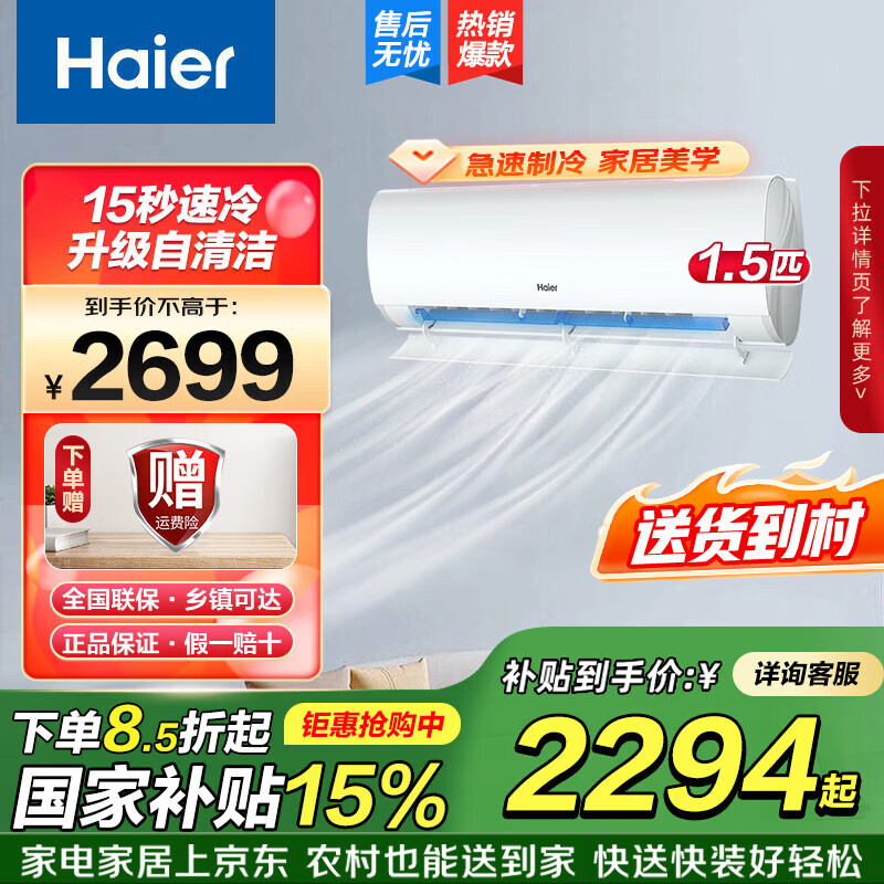 海尔净省电空调1.5匹到手价2149元