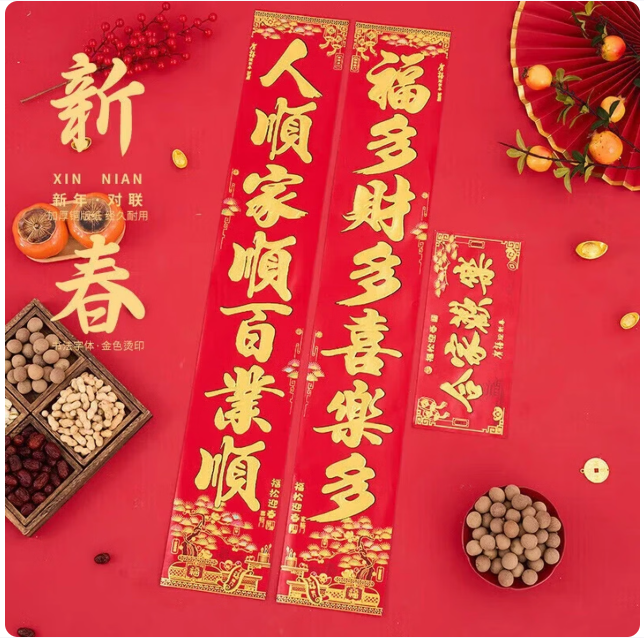 3.49元抢!2026马年铜版鱼金字对联,1.3米加厚门贴春节特惠