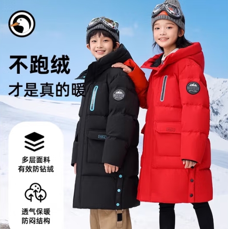 199元!鸭鸭 男女中大童中长款极寒加厚羽绒服 多色 120~170码