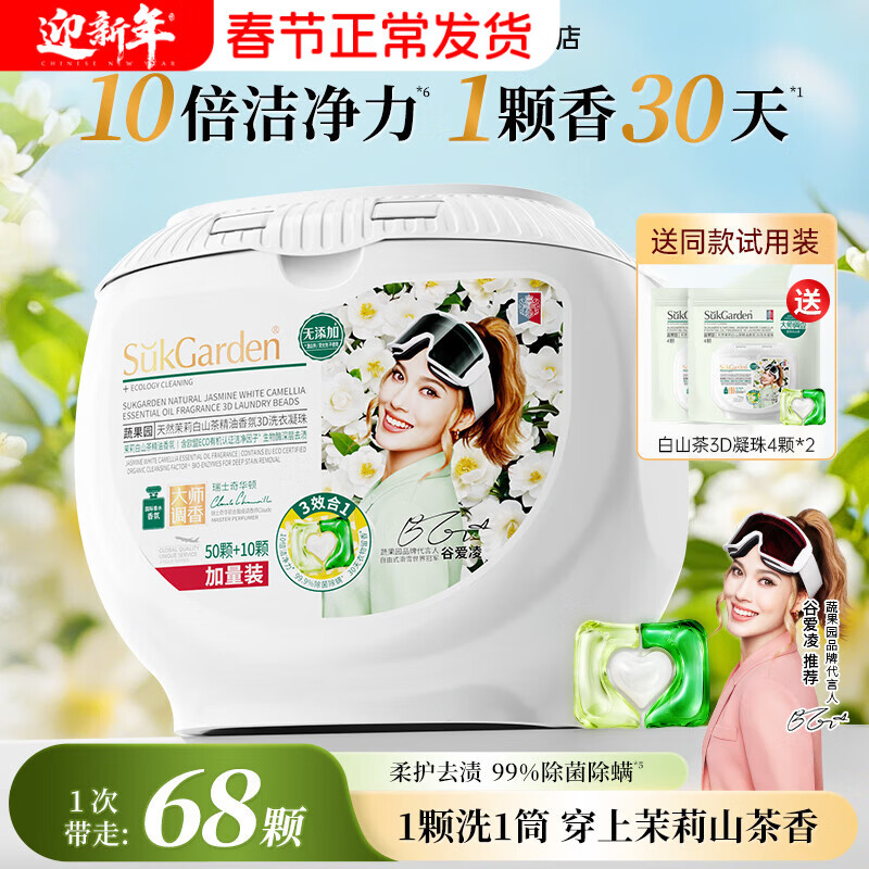 【限时特惠】蔬果园茉莉山茶香三合一洗衣凝珠68颗,到手仅36.9元!