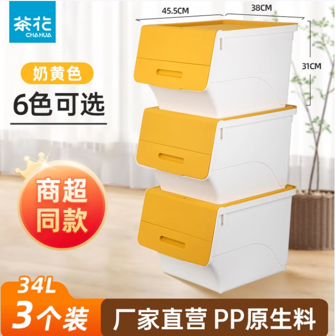69.2元包邮!茶花·收纳箱 大号34L*3个