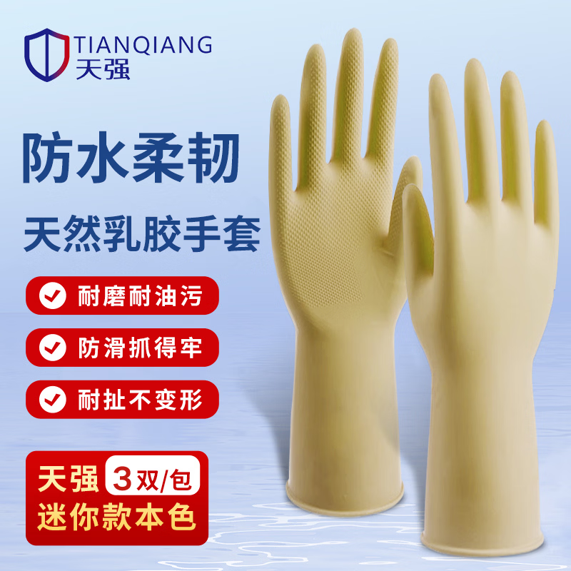 天强天然乳胶手套 3 双装仅需 8.6 元