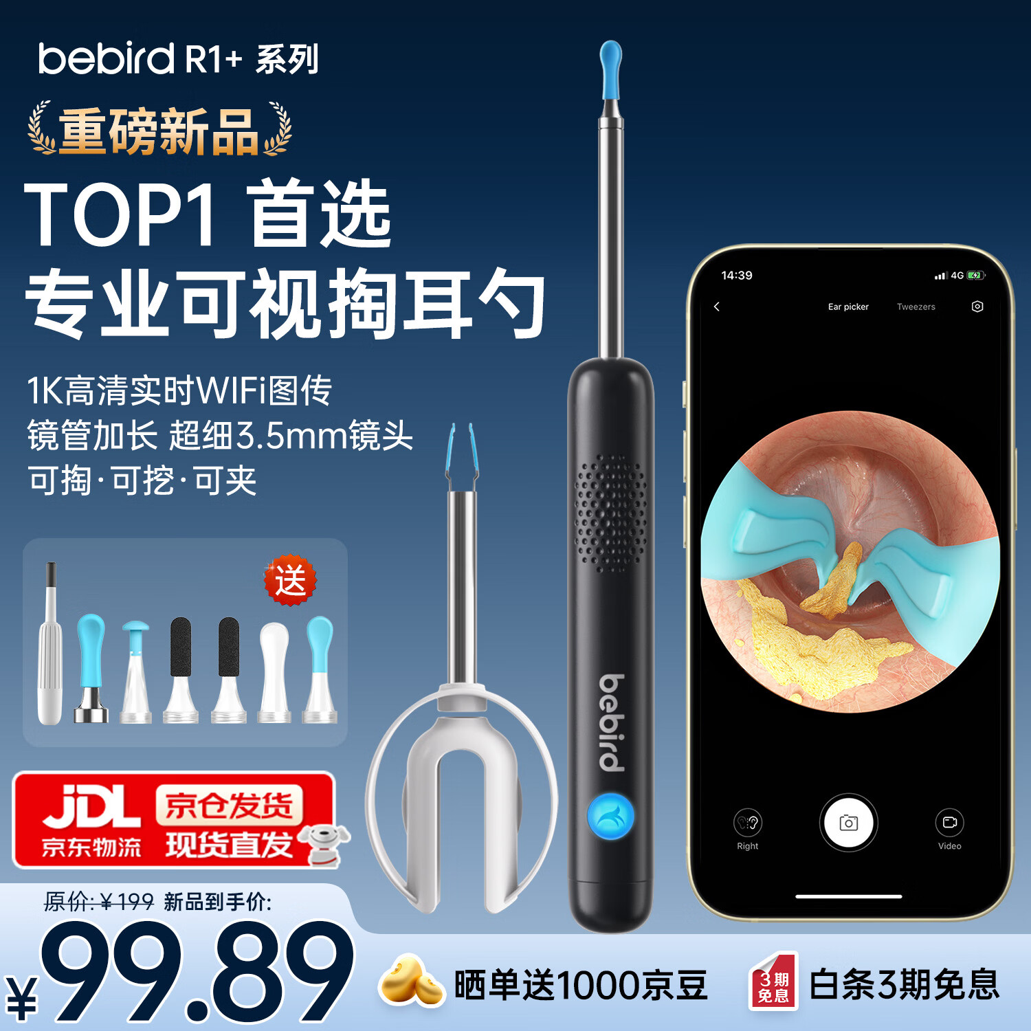 bebird 蜂鸟可视掏耳勺 R1+专利镊子款仅需 99 元
