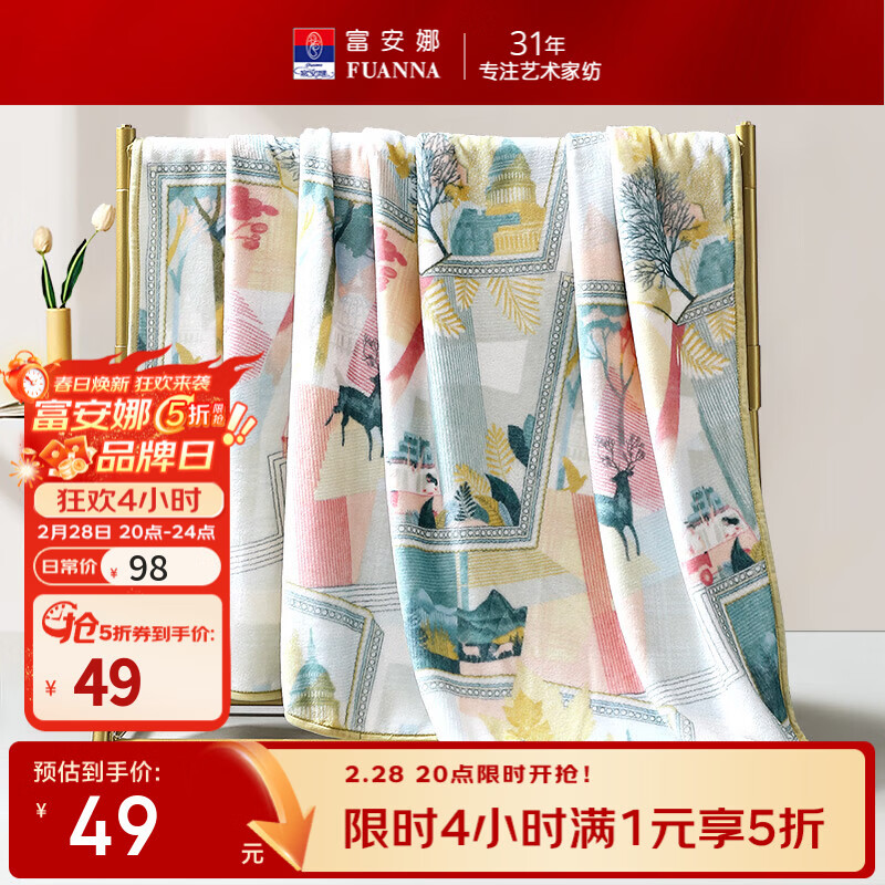 富安娜家纺合集 5 折券开抢!毛毯 49 元/乳胶枕 59 元/四件套 159 元起