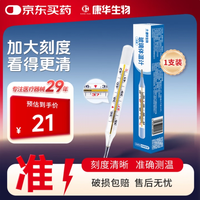 12.9元包邮!医用体温计家用玻璃水银温度计