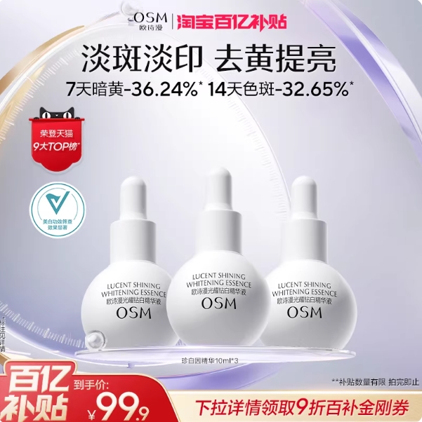 39.9元包邮!欧诗漫·珍白因精华小白瓶 10ml*3瓶