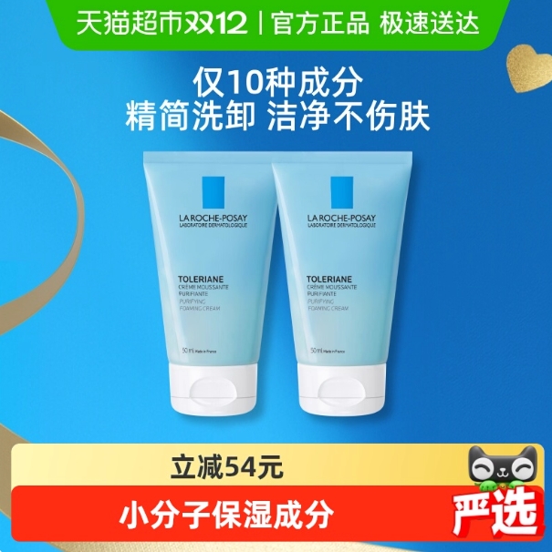 24.4元包邮!理肤泉特安洁面泡沫敏感肌温和50ml*2支