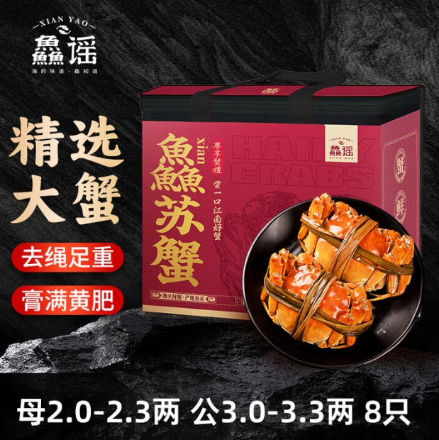 106元!自营鱻谣 大闸蟹 得公3.3两母2.3两 4对8只
