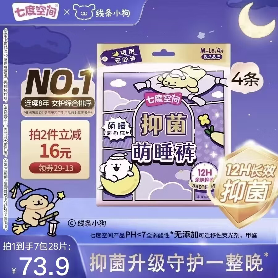 七度空间抑菌萌睡裤28片,到手价仅43.9元