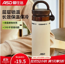 19.5元包邮!爱仕达 316不锈钢保温杯400ml