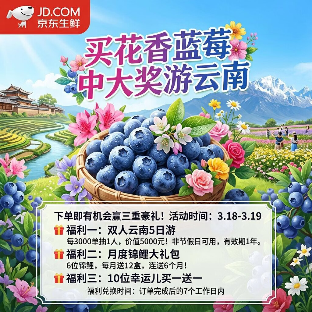 京鲜生x悦美添花香蓝莓12盒装,最终到手价仅需9.9元/盒