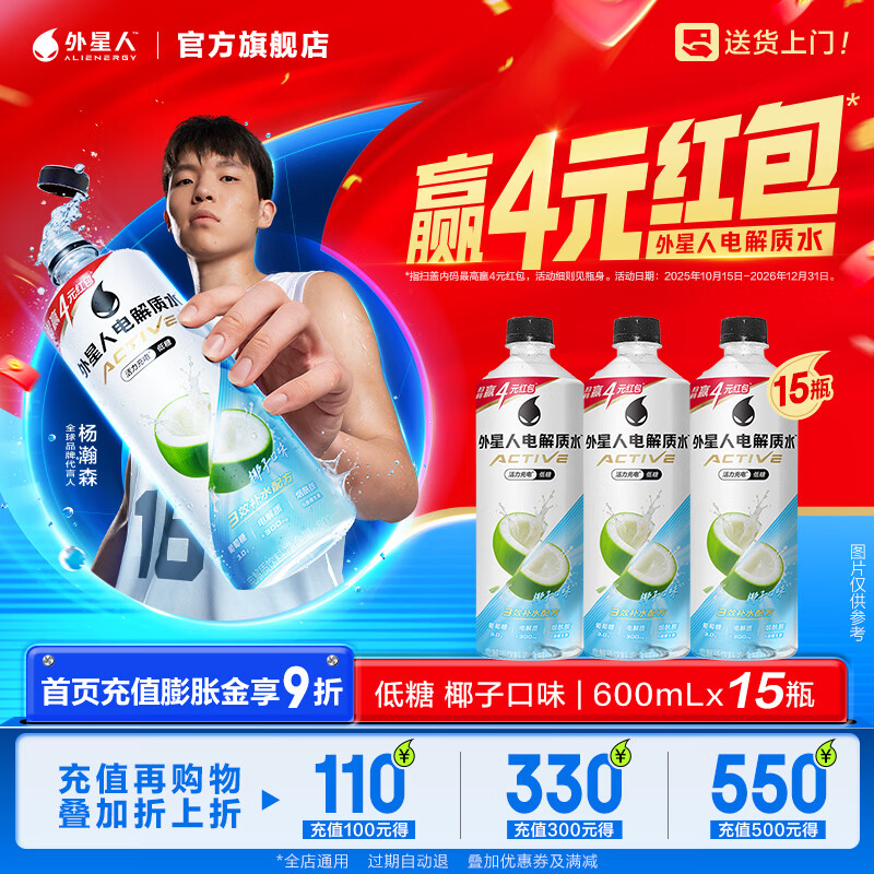 外星人低糖电解质水600ml*15瓶 首购叠后仅3.7元/瓶