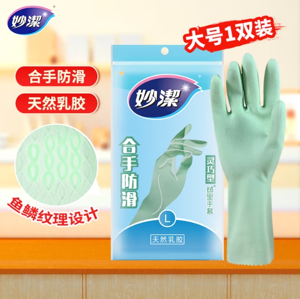 1.9元包邮!妙潔 MGCL 橡胶手套 灵巧型 L 绿色