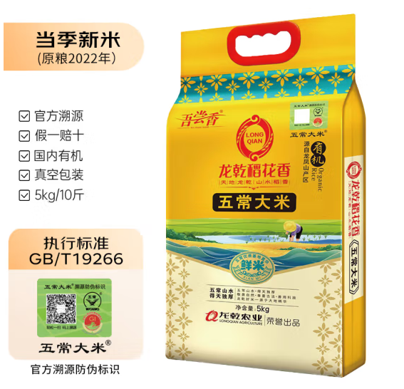 五常大米官方溯源 龙乾稻花香,米饭油亮白晰,喜欢它的软糯Q弹,清香,夏天冷饭一样好吃。