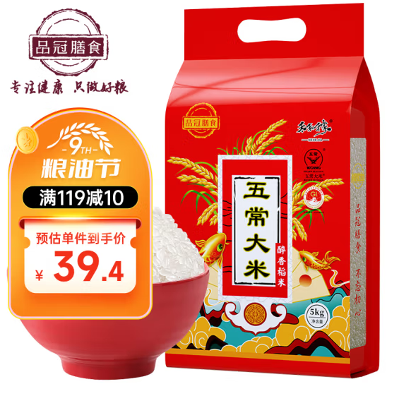 品冠膳食 五常稻花香,大米晶莹剔透,软硬合适,煮出来米香味十足。