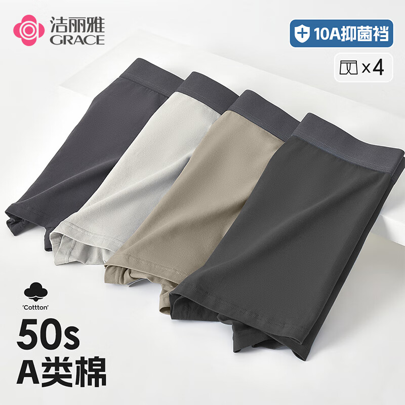 洁丽雅男士平角内裤4条装,最终到手价35.9元包邮