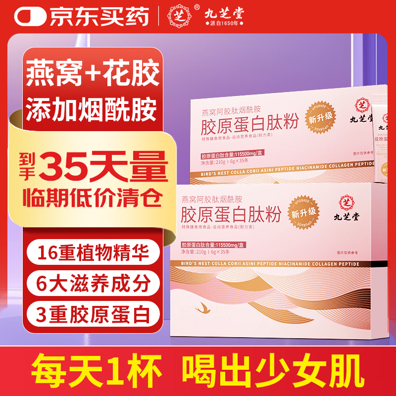 九芝堂胶原蛋白肽粉6000mg*35袋 限时领20元券+首单6元立减 赠维C咀嚼片