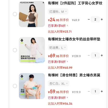 有棵树内裤家居服专场:男士3条29.9元/女士3条26.9元起