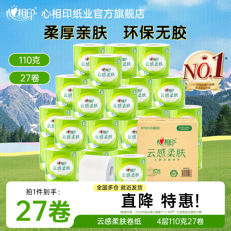 心相印云感柔肤卷纸27卷*3件,领券到手95.7元