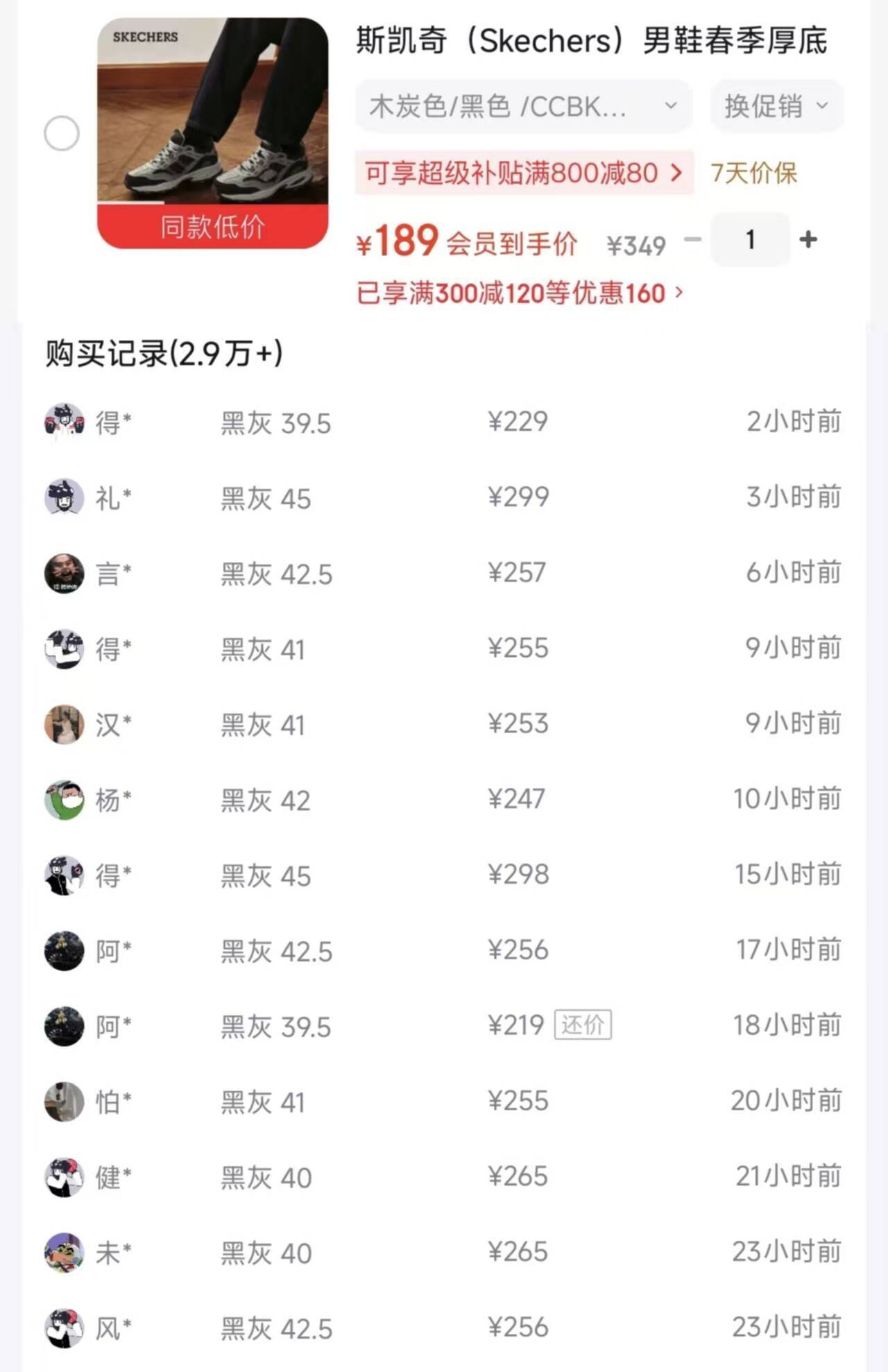 斯凯奇vigor2.0老爹鞋到手189元