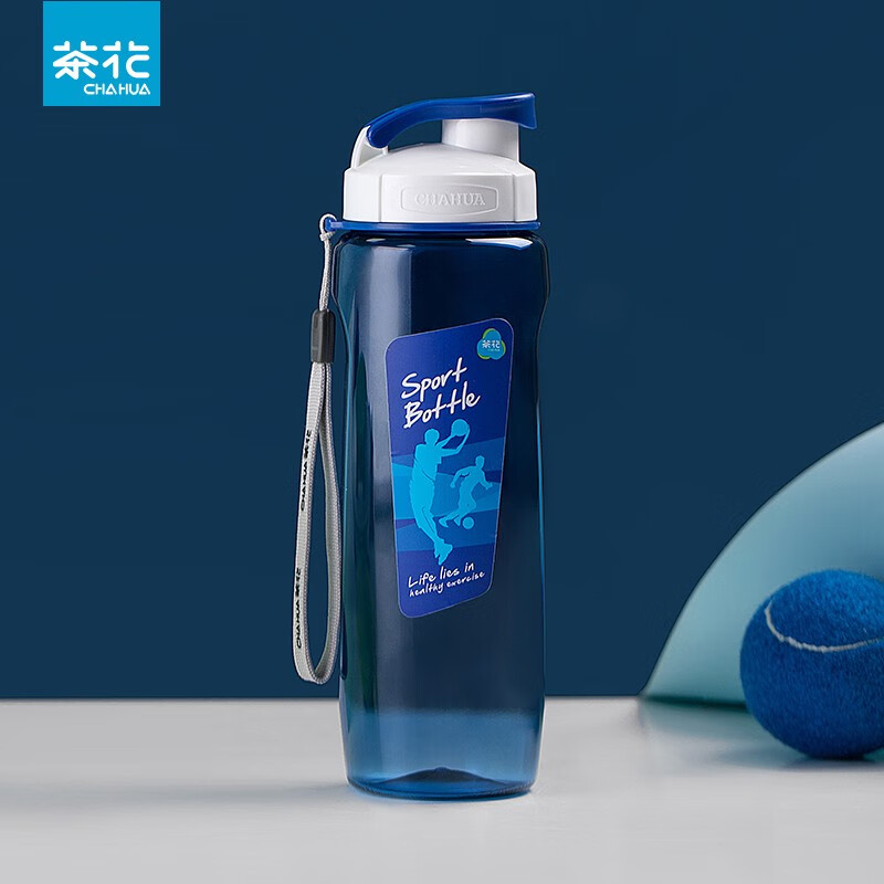 ¥13.9 茶花(CHAHUA)茶花直纹水杯运动水杯塑料便携随手杯带盖提绳夏季运动健身旅行 730ML随机色【耐温-20-100℃】 49.9