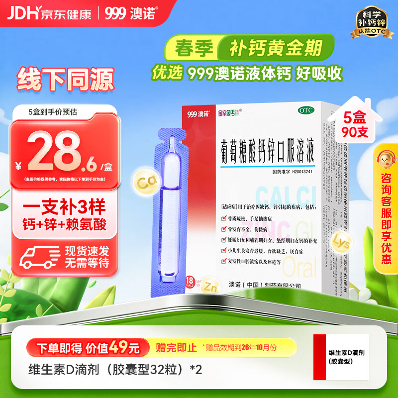 自营澳诺葡萄糖酸钙锌口服液10ml*90支 到手114.4元