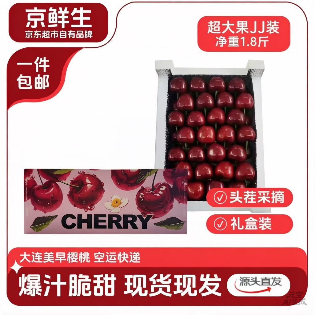 京鲜生大连美早樱桃:领券后低至89.9元,JJJ级单果12g+源头直发
