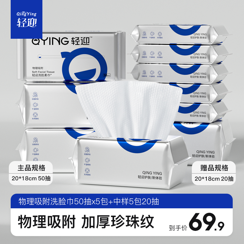 ¥69.90 轻迎物理吸附特厚款抽取式一次性干湿两用洗脸巾 69.90