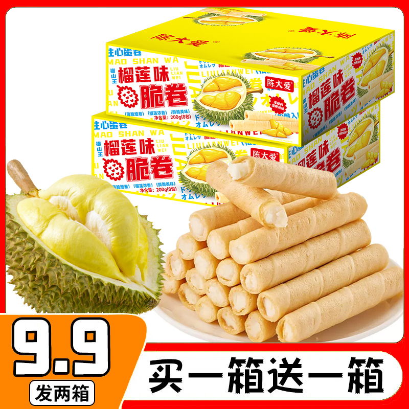 ¥9.90 【买一箱送一箱】陈大爱猫山王榴莲蛋卷酥脆注心脆卷到手共96根 9.90