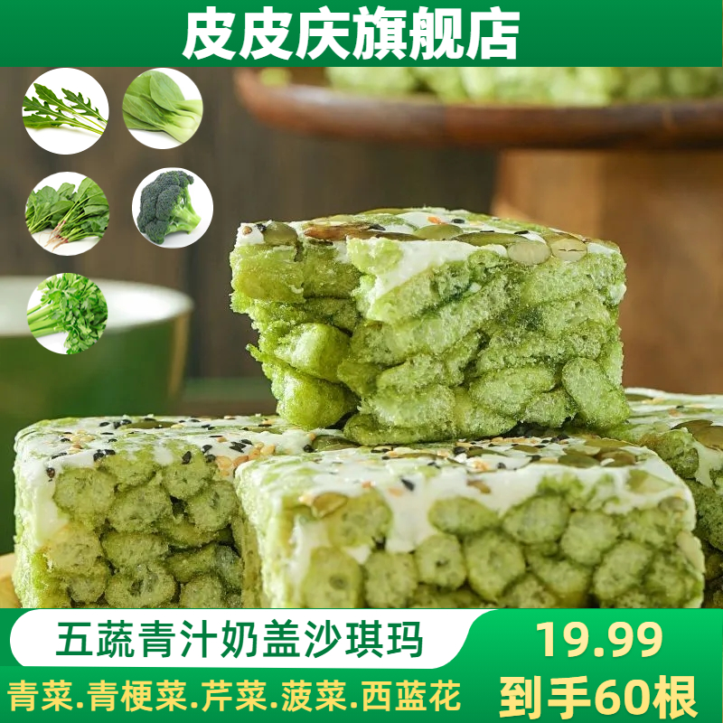 ¥19.99 【19.99买50送10包】五蔬青汁奶盖沙琪玛蔬菜减脂代餐办公室零食F 19.99