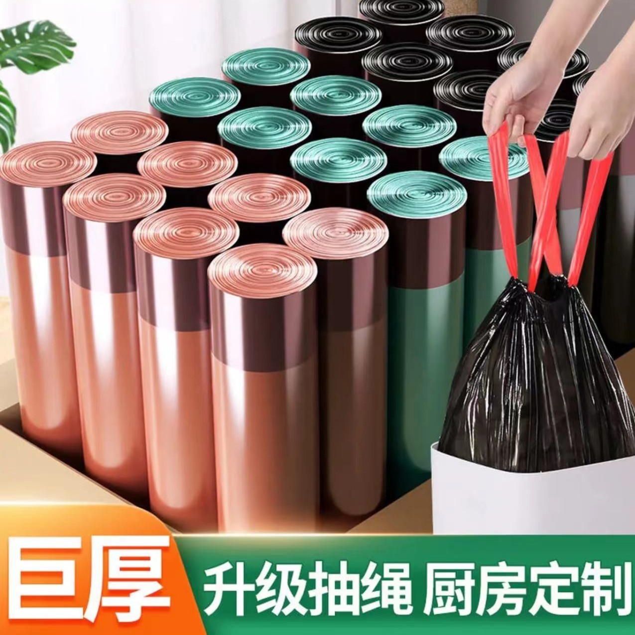¥9.90 【9.9/150只】加厚抽绳垃圾袋彩色垃圾袋 工厂直发 实用居家好物 9.90