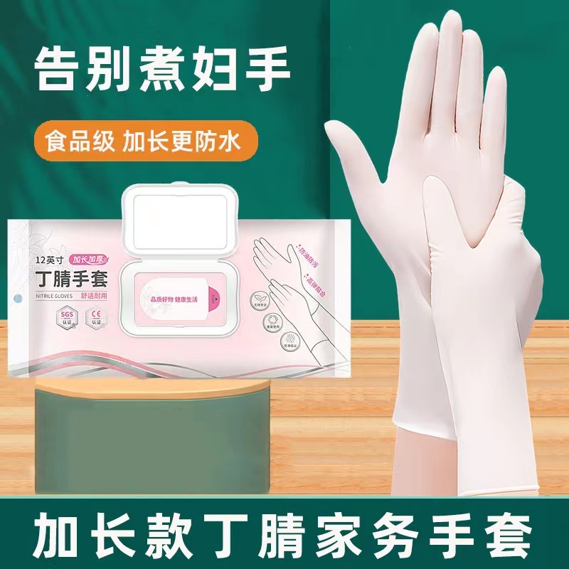 ¥29.90 【买一包送一包】12寸丁腈手套加厚防油家务用厨房洗碗可重复使用 29.90